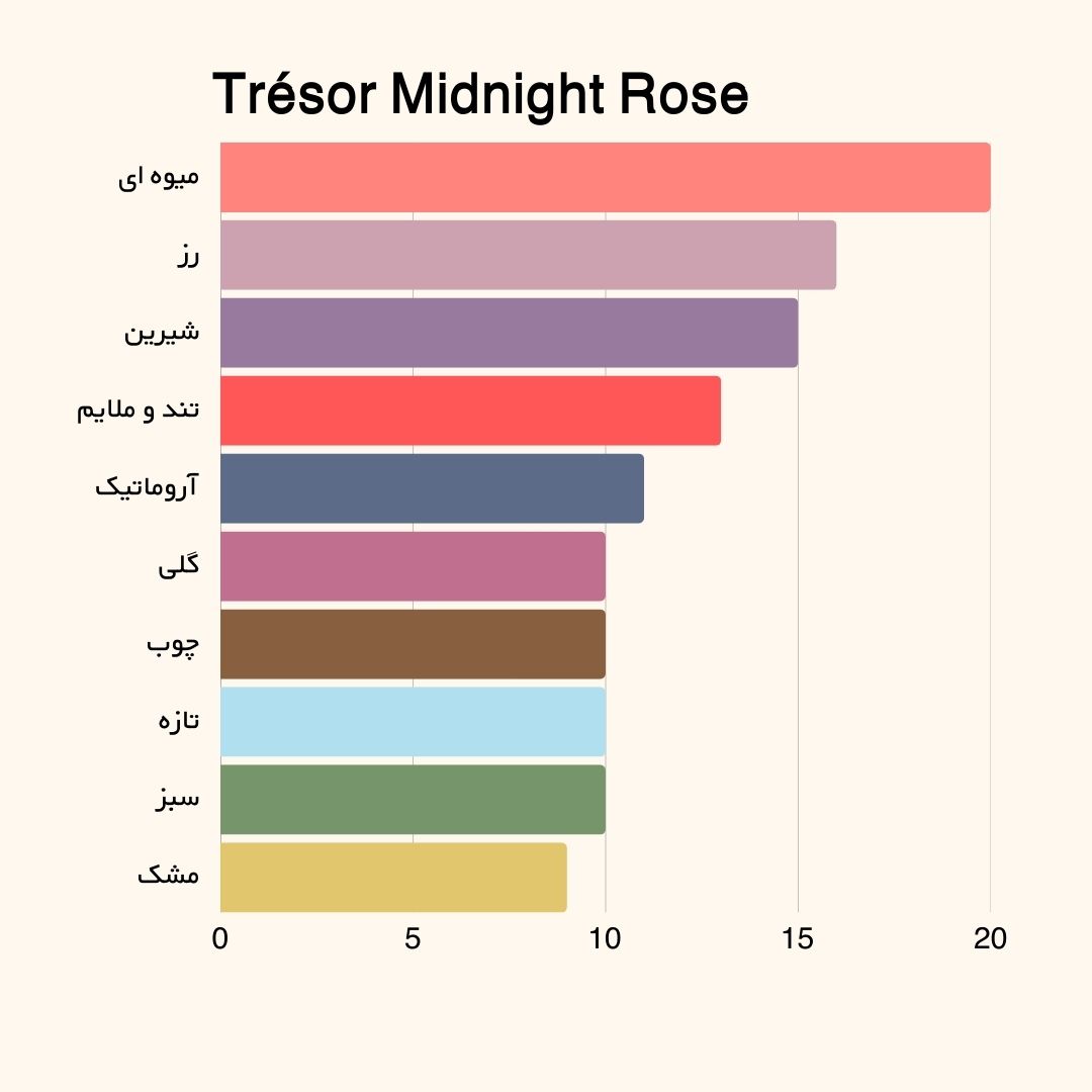عطر زنانه ترزور میدنایت رز از برند لانکوم، عطری با رایحه گلی، چوبی و مُشکی است.
